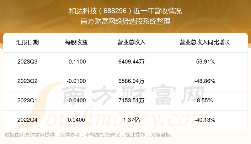 和达科技股票近一年营收情况如下表: