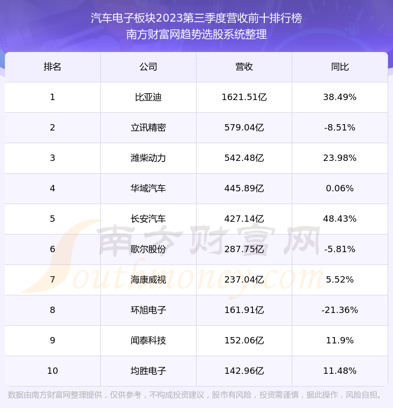 按照南方财富网趋势选股系统统计,该股所属板块为汽车电子板块,该板块共有222只股票,合兴股份2023第三季度营收在该板块中排名为第148名,该板块2023第三季度营收排名前十的股票如下表: