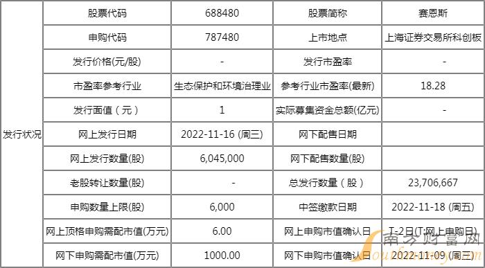 赛恩斯股票代码为688480 赛恩斯申购状况一览,下文就随大周来简单的了解一下吧。